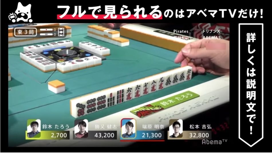 11巡目ツモる前巡、親の勝又がたろうのアガリ牌発を切ったにも関わらず見逃した箇所がポイントです。